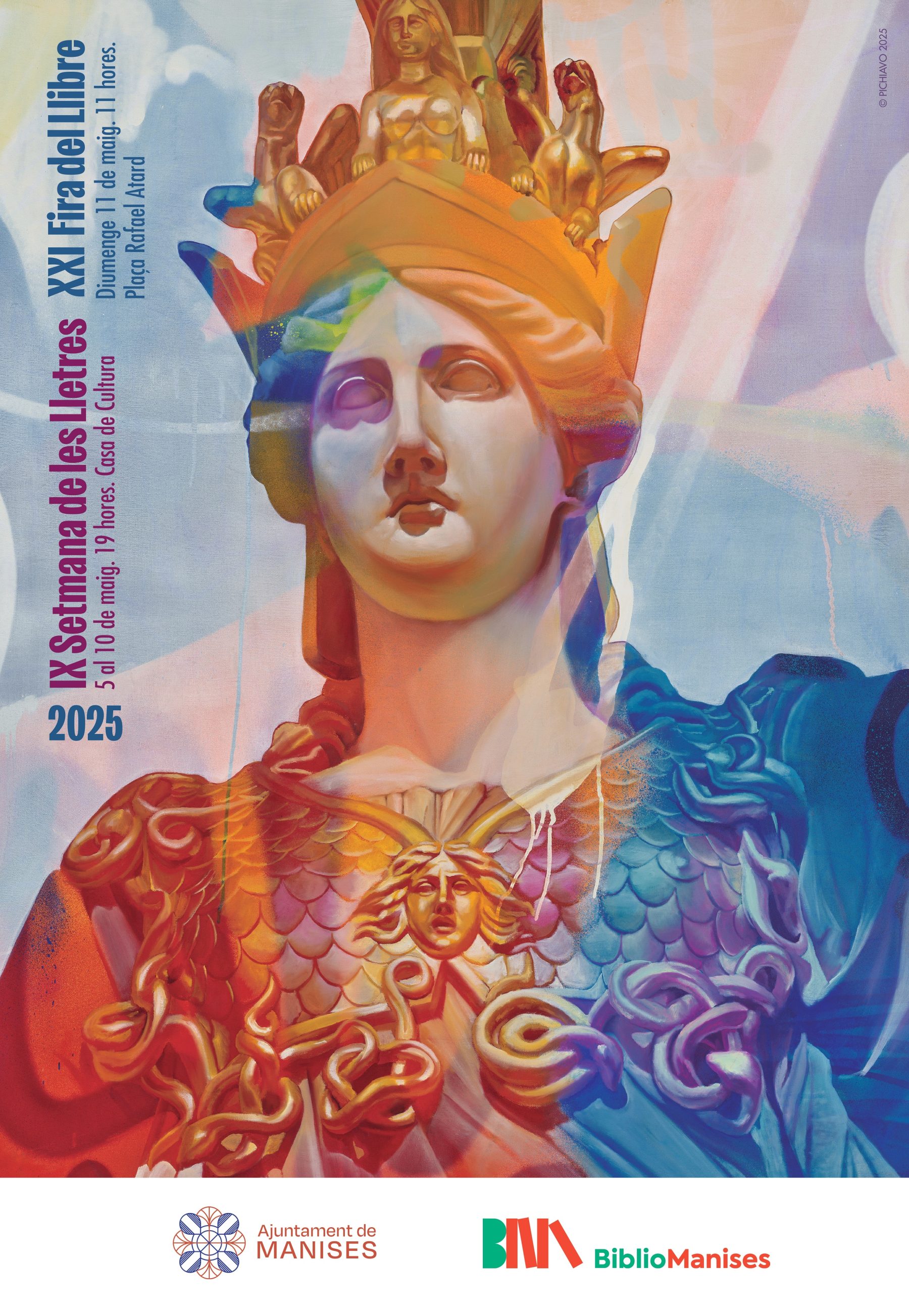A més, el duo artístic PichiAvo il·lustra aquest any el cartell de la IX Setmana de les Lletres de Manises, amb una imatge d’Atenea, deessa grega de la saviesa. Els seus dissenys han viatjat per multitud de països i es caracteritzen per fer referència a la fusió de l’art clàssic amb l’art urbà contemporani. Aquesta no és la primera vegada que PichiAvo deixa la seua empremta a Manises, ja que fa uns anys decoraren les carrosses de la Cavalcada de la Ceràmica amb els seus coneguts grafitis.